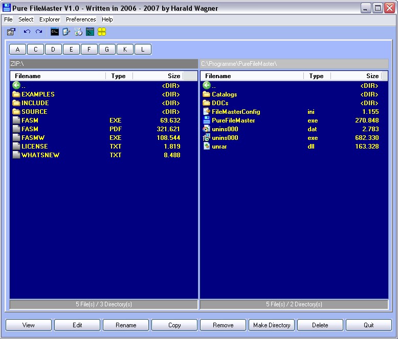 - Kopieren oder Bewegen von Dateien bzw. Verzeichnissen mit zwei Fenstern.